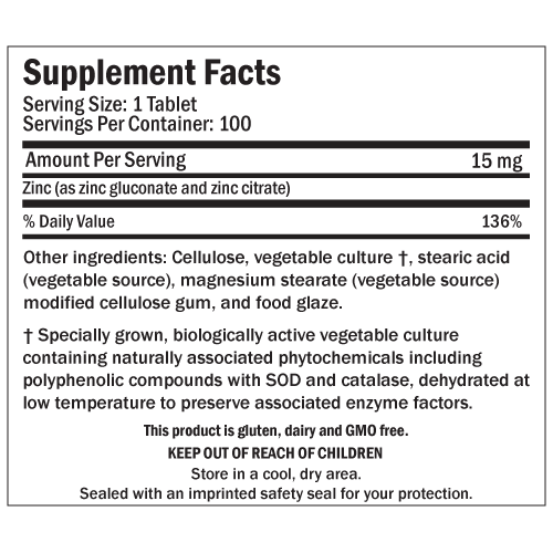 Captain Zn™ supplies 15 mg of elemental zinc per tablet. Zinc is a mineral essential to both normal health and to optimal cellular function. As a cofactor for an excess of seventy enzymes, zinc plays an important role in many cellular processes. Zinc is also a component of specific DNA binding proteins, known as zinc finger proteins, commonly referred to as zinc fingers. Zinc fingers are vital for nutrient/gene interactions.